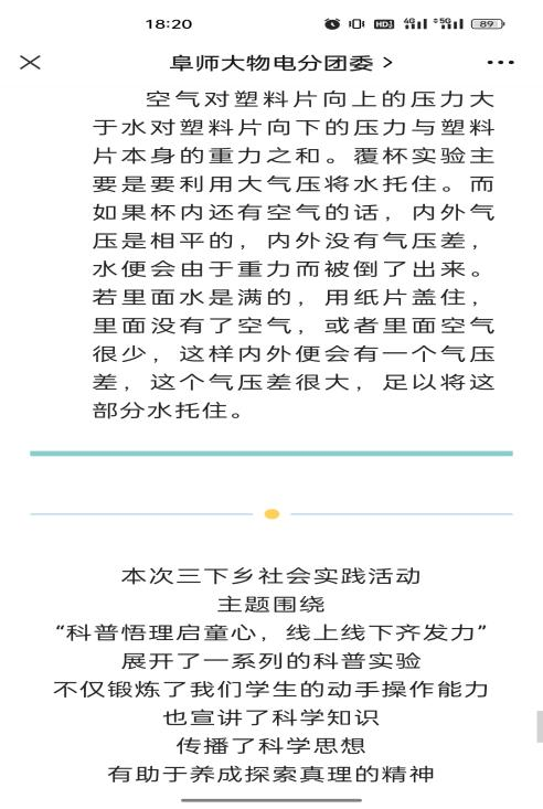暑期因为疫情原因,我们无法展开线下的“三下乡”宣讲活动,积极开展线上“三下乡”宣讲,引导广大青年学生更好地了解社会、服务社会,从神奇的物理现象中学习更多的物理知识,让广大青年学生在实践中受教育、长才干,培养他们的社会责任感和服务奉献精神。