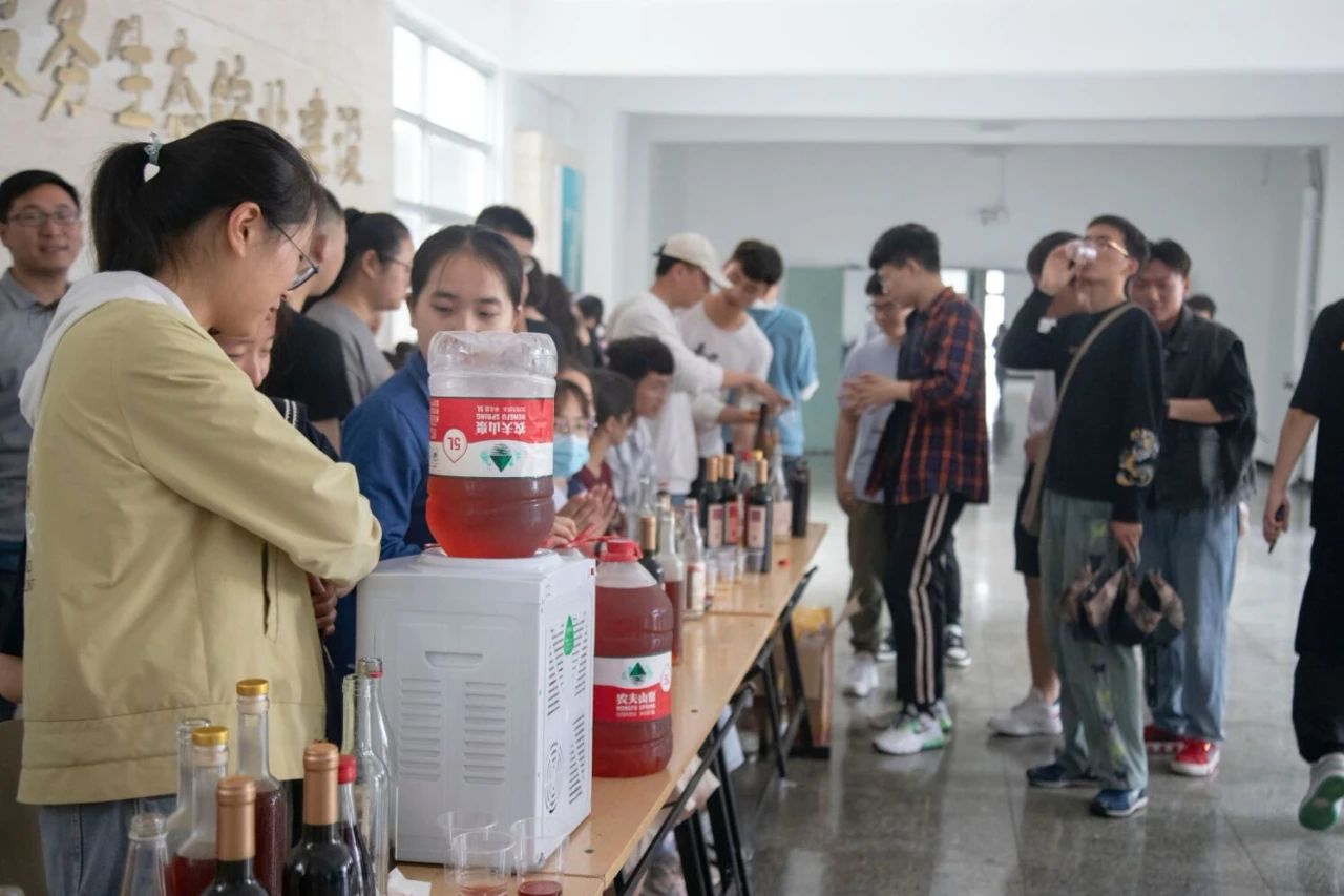 5月14日上午,食品质量与安全专业见习暨产学研成果展在躬行E楼举办果酒鉴赏活动。阜阳市果酒工程技术研究中心相关老师,2018、2019、2020级食品质量与安全专业全体同学参加此次活动。