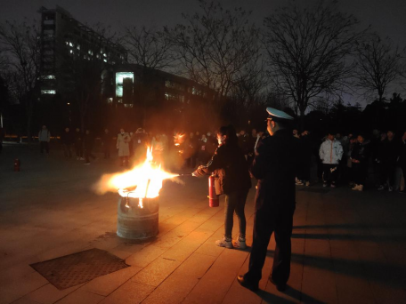 本次培训共设“消防安全知识培训”、“疏散演练”及“实操训练”三个环节。培训会上,徐勇以典型火灾事故案例入手,从防火的基本常识、灭火器的正确使用、疏散逃生的基本方法以及树立消防安全意识重要性方面进行了深入讲解。理论宣讲后,警报拉响,参会师生用湿毛巾捂住口鼻,弯腰低头,紧张有序地进行了疏散演练。撤离至安全区域后,在徐勇教官的示范和指导下,参演师生分批次练习使用灭火器,完成灭火演练。活动最后,马健强调全院师生要牢固树立“安全无小事”的底线思维意识,时刻绷紧消防安全之弦,做到时时讲安全,事事讲安全。