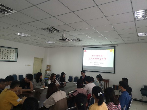 为进一步了解返校学生的思想动态,增强新学期学生教育管理的针对性和时效性,引领大学生健康成长,2020年9月23日上午,化学与材料工程学院团委在西湖校区躬行楼F楼202会议室召开新学期学生思想动态座谈会。会议由学院团委负责人董淳一主持,30余名各年级学生代表参会。