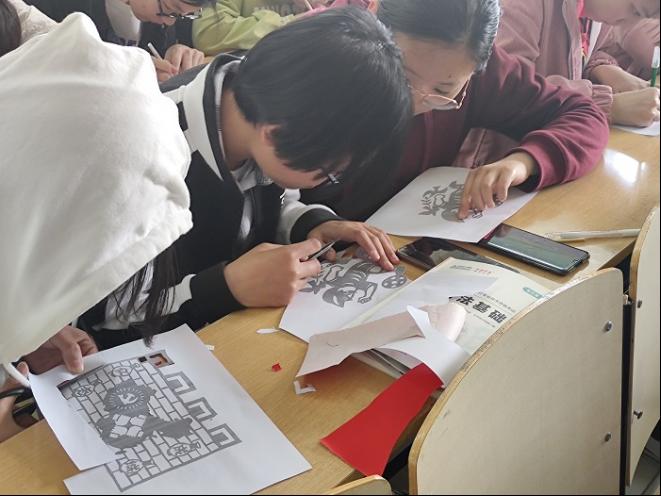 活动中,葛庭友老师声情并茂地向大家传授剪纸技艺,社员们全身心的投入到剪纸艺术的乐趣中。在葛老师的指导下,同学们有板有眼的剪刻着,左一剪,右一剪,不一会儿的功夫,平凡的纸张在指尖焕发出了别样的风采,一个个形态各异的图案活灵活现,社员们的脸上都洋溢出了成功的喜悦之情,积极的展示自己的成果。活动结束后,两个社团负责人也借此机会进行了交流,共同探讨社团的建设和管理问题,交流之后受益匪浅。