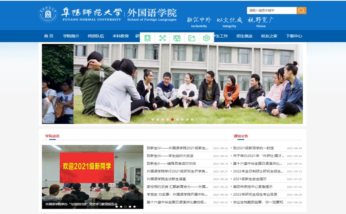 思想政治工作要因事而化、因时而进、因势而新。外国语学院紧密契合新生“网络原居民”的特质,牢牢把握录取后报到前的关键期,充分利用学院网络、微信公众号等网络平台,开设迎新专题专版,不间断推出“欢迎2021级新同学”飘窗、致2021级新同学的一封信、辅导员有话对你说、学生组织大放送、新生入学温馨提示等一系列网络推文,前置入学教育,让新生同学提前感受到外国语学院大家庭的温暖关怀、辅导员老师殷殷期待和谆谆嘱托,校园生活的精彩纷呈和学长学姐的多才多艺,引导新生提前认识大学,了解学院,憧憬生活。