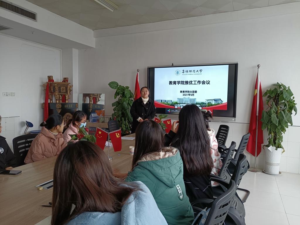 为加强对共青团员的政治引领,积极向党组织输送新鲜血液、抓好推优工作,落实习近平总书记关于青年工作的重要思想的关键举措。9月20日,教育学院团委在主楼802会议室召开推优工作会议,会议由教育学院分团委负责人张思奇主持,各班团干部参会。