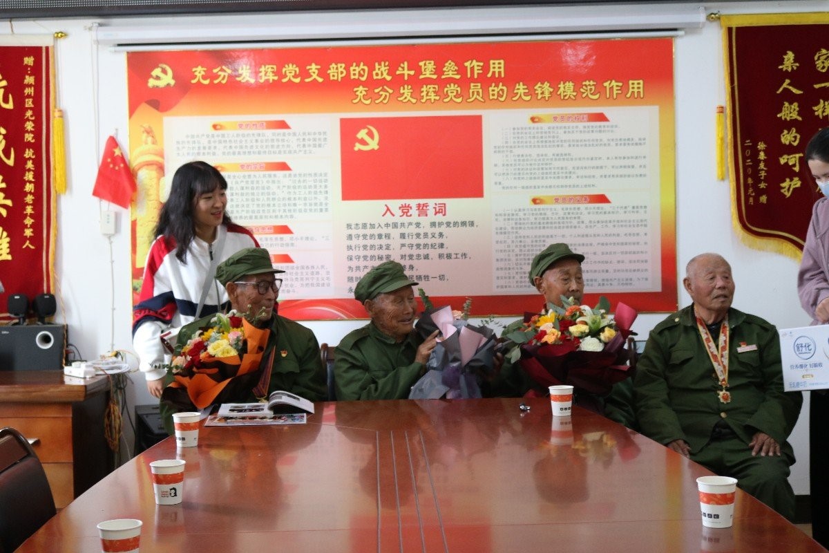 活动伊始,光荣院院长播放了一段介绍光荣院的短片,通过短片我们了解到现有供养院民18名,其中年龄最大的95岁,最小的71岁,均属于建国前后入伍的老复员军人、伤残军人、困难优抚对象,他们曾经参加过解放战争、进军大西南、抗美援朝等战斗,多人在部队荣立二等功、三等功。接着,院长为我们请来四位老兵,他们依次讲述了自己的参军经历,在艰苦的抗战环境中,他们面临的不仅是敌人的威胁,还有缺衣少食的生活磨砺。四位老战士还提到现如今的生活相较于他们那个时期,有了翻天覆地的变化,百姓的日子越来越好。种种经历让人不禁动容,同学们也深知现如今的美好生活离不开这些老战士在抗战时期的无畏付出,更加珍惜现如今来之不易的生活。最后,四位老兵对我们青年学生提出了殷切的希望,新青年要坚定信念,立足当下,接好建设中国的接力棒。老师同学们还和老兵合影留下了珍贵的影像。