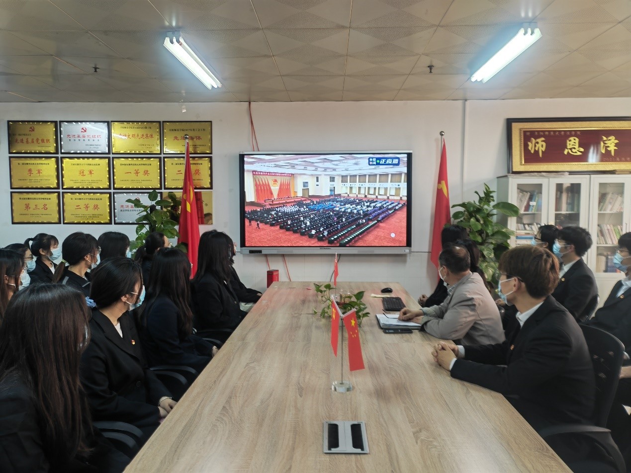 5月10日上午,庆祝中国共产主义青年团成立100周年大会在北京人民大会堂隆重举行,中共中央总书记、国家主席、中央军委主席习近平出席大会并发表重要讲话。法学院党委书记钱守云、学生会主席团成员、各班级团支书及团员青年代表40余人在景行楼812办公室集中收看了大会直播。各班级组织学生通过网络、新媒体等渠道关注大会盛况。