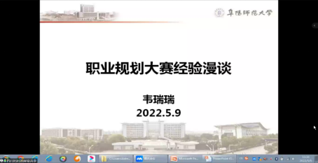 为鼓励马院学子积极参与职业规划设计大赛,解决同学们参赛过程中遇到的问题,5月9日中午,马克思主义学院邀请学院学生党支部副书记、大学生职业规划课教师韦瑞瑞老师,通过腾讯会议对学生进行职业规划设计大赛集中指导。会议由就业指导员赵晨阳老师主持。