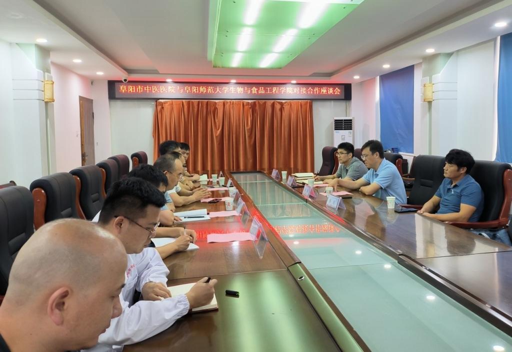 8月11日,在深入开展主题教育之际,生物与食品工程学院党委书记孙华﹑抗衰老中草药安徽省工程技术研究中心负责人屈长青教授、吴国火博士以及安徽九龙贡食品科技有限公司总经理秦瑞等一行应邀前往阜阳市中医医院开展对接合作交流,进一步拓宽校院合作渠道,发挥中医药文化精髓协同育人功能,深入贯彻落实习近平总书记关于教育科技人才的重要论述,坚持“四个面向”、强化协同创新。