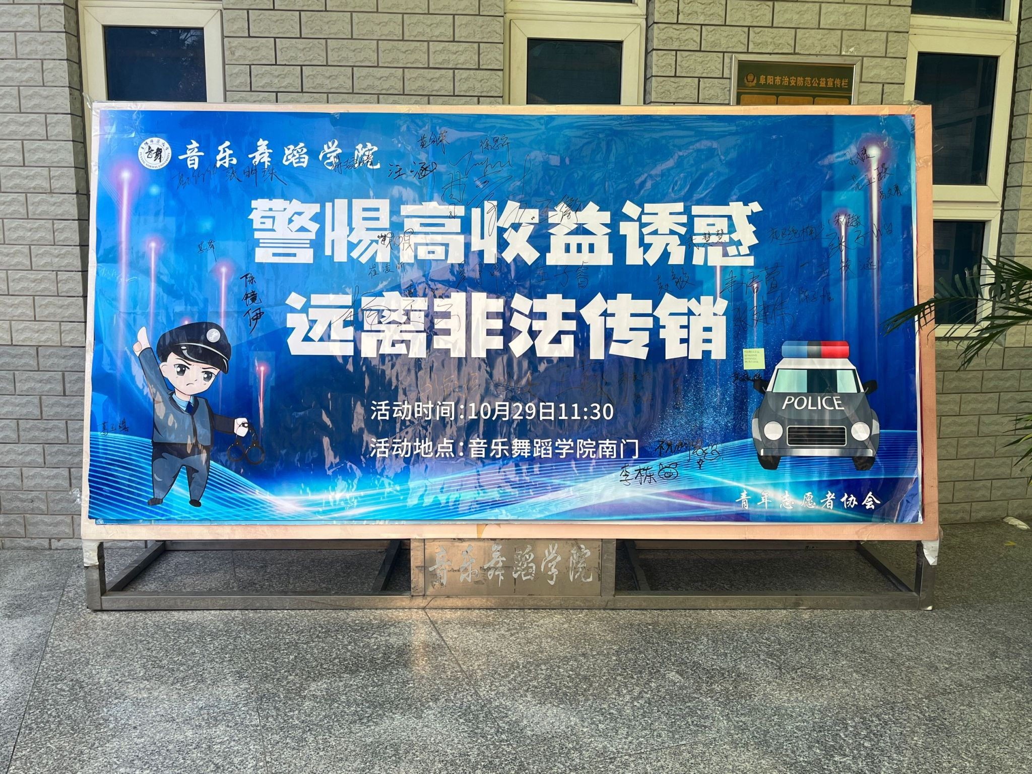 组建一支志愿者队伍。10月28日至29日期间,音乐舞蹈学院防范传销宣传志愿者队伍充分发挥专业优势,运用音乐、舞蹈等艺术形式,创作了生动有趣的防范传销宣传作品。志愿者们还在学院门口向学生发放反诈宣传手册和进行反诈知识标签书写,让防范传销知识深入人心。