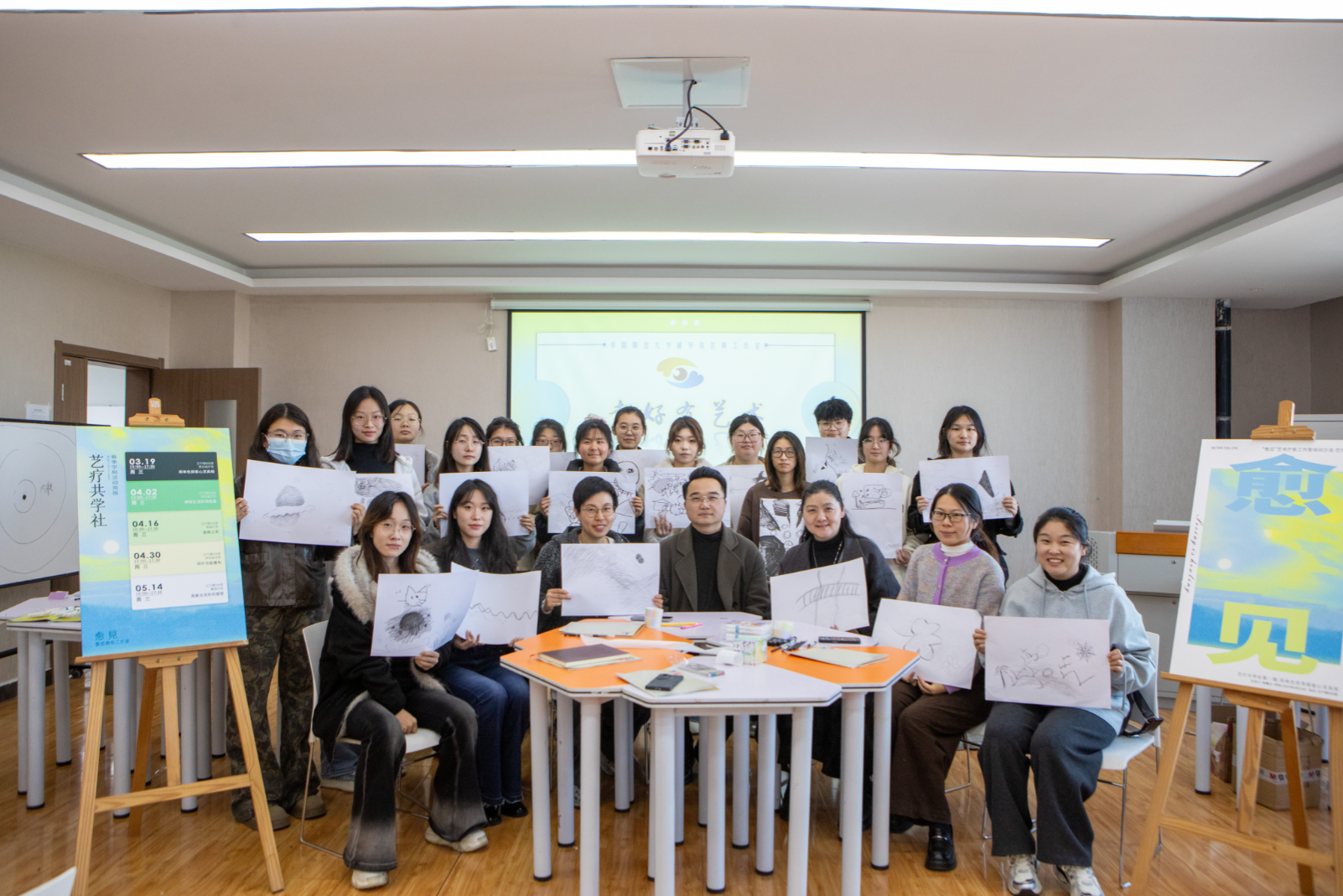 3月20日,由辅导员名师工作室——“愈见”艺术疗愈工作室精心策划的艺疗共学社第一期活动《黑白画疗愈》在正行楼604举办,活动由工作室成员张翰文主讲。除了工作室团队成员外,活动还吸引了众多同学踊跃参与,共同用“单色探寻心灵真相”。