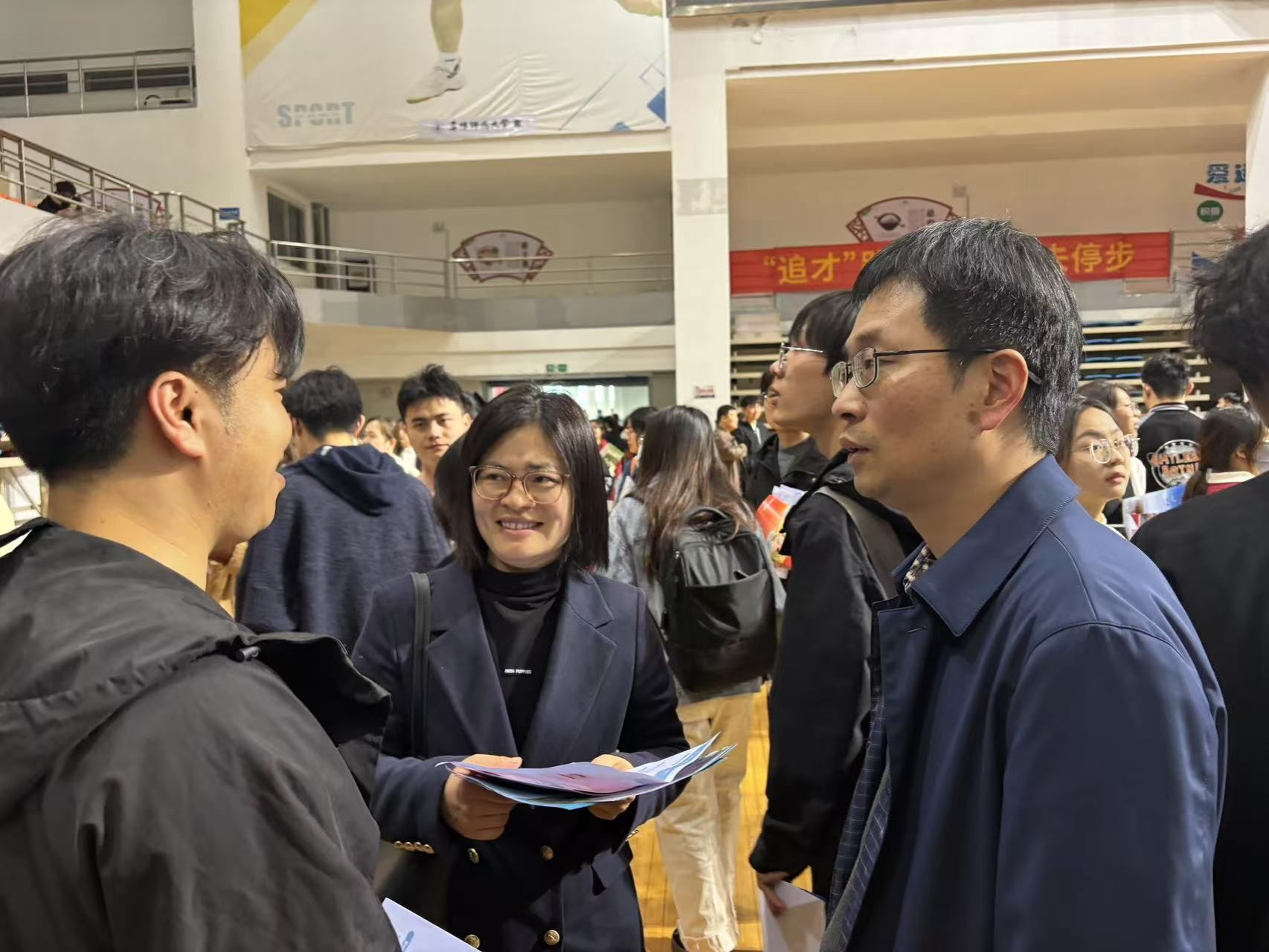 3月22日,“招才引智安徽高校行”之皖北地区专场招聘会在我校体育中心举办,我院党委书记宋东锋、院长张雪梅、副书记王永刚、全体毕业班辅导员组织带领160余名2025届本、硕毕业生积极参会。