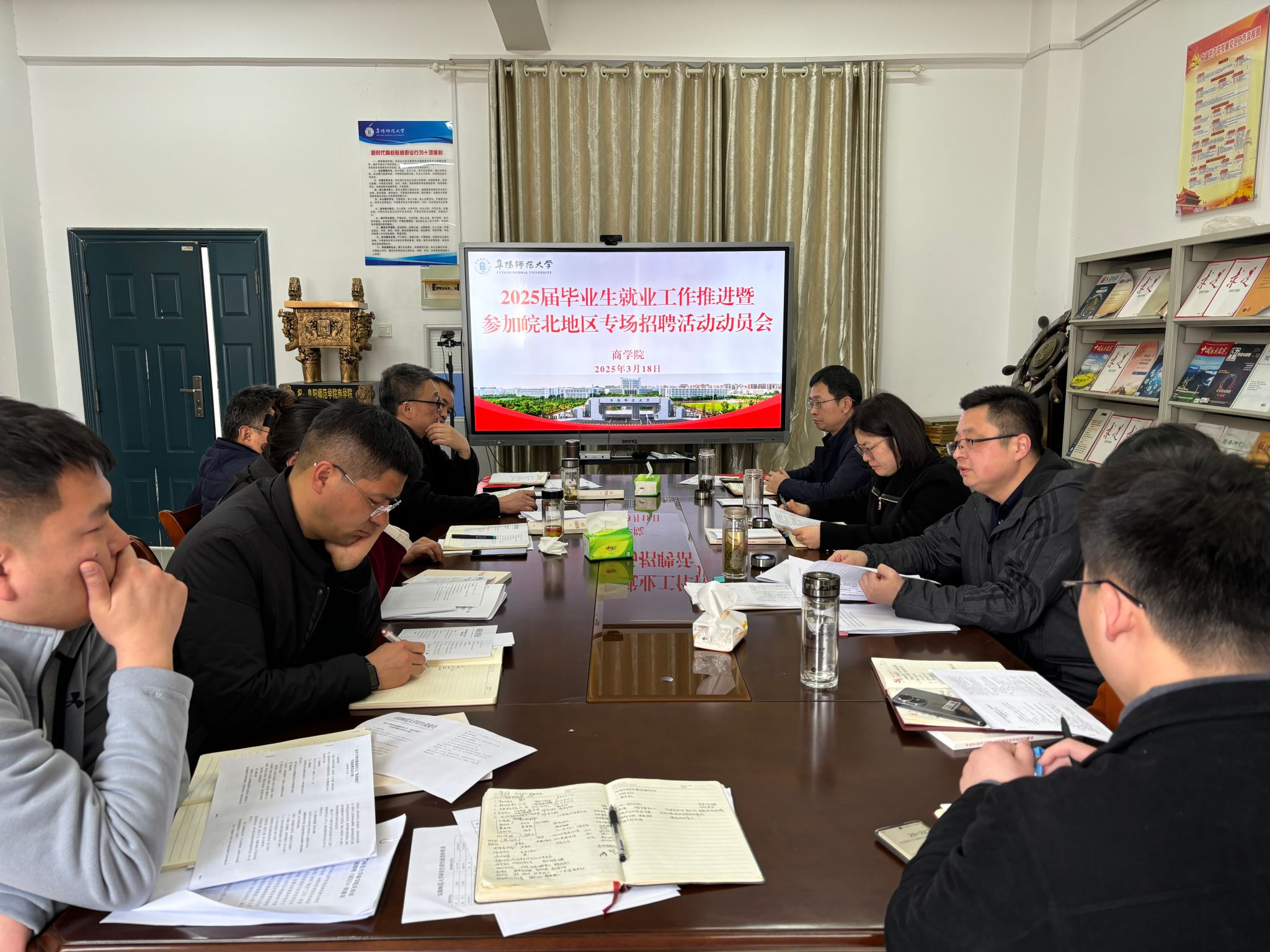 会议学习了《教育部办公厅关于开展2025届高校毕业生“春季促就业攻坚行动”的通知》,传达了学校2025届毕业生就业工作推进会会议精神,通报了学院当前毕业生去向落实率情况以及具体工作中的难点堵点问题,重点对参加“招才引智安徽高校行”之皖北地区专场招聘活动进行了布置和安排。