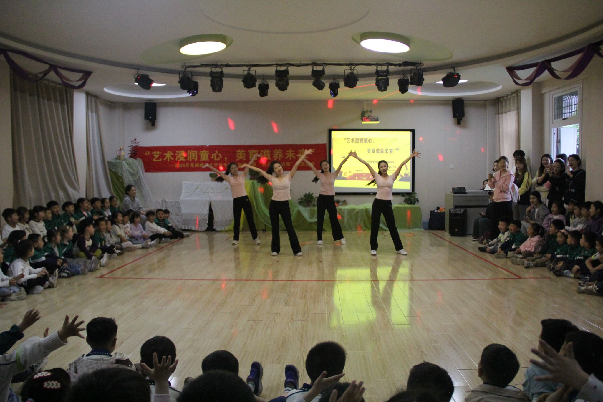 在五四青年节来临之际,为弘扬五四精神、践行青年担当,4月21日上午,音乐舞蹈学院组织广大青年团员前往阜阳育红幼教集团海亮上府分园开展“五四薪火传·艺启童心梦”志愿服务活动。学院党委书记臧岳林、院团委孙丹丹、张静静老师及40余名同学参与活动,以专业艺术素养服务幼儿教育。