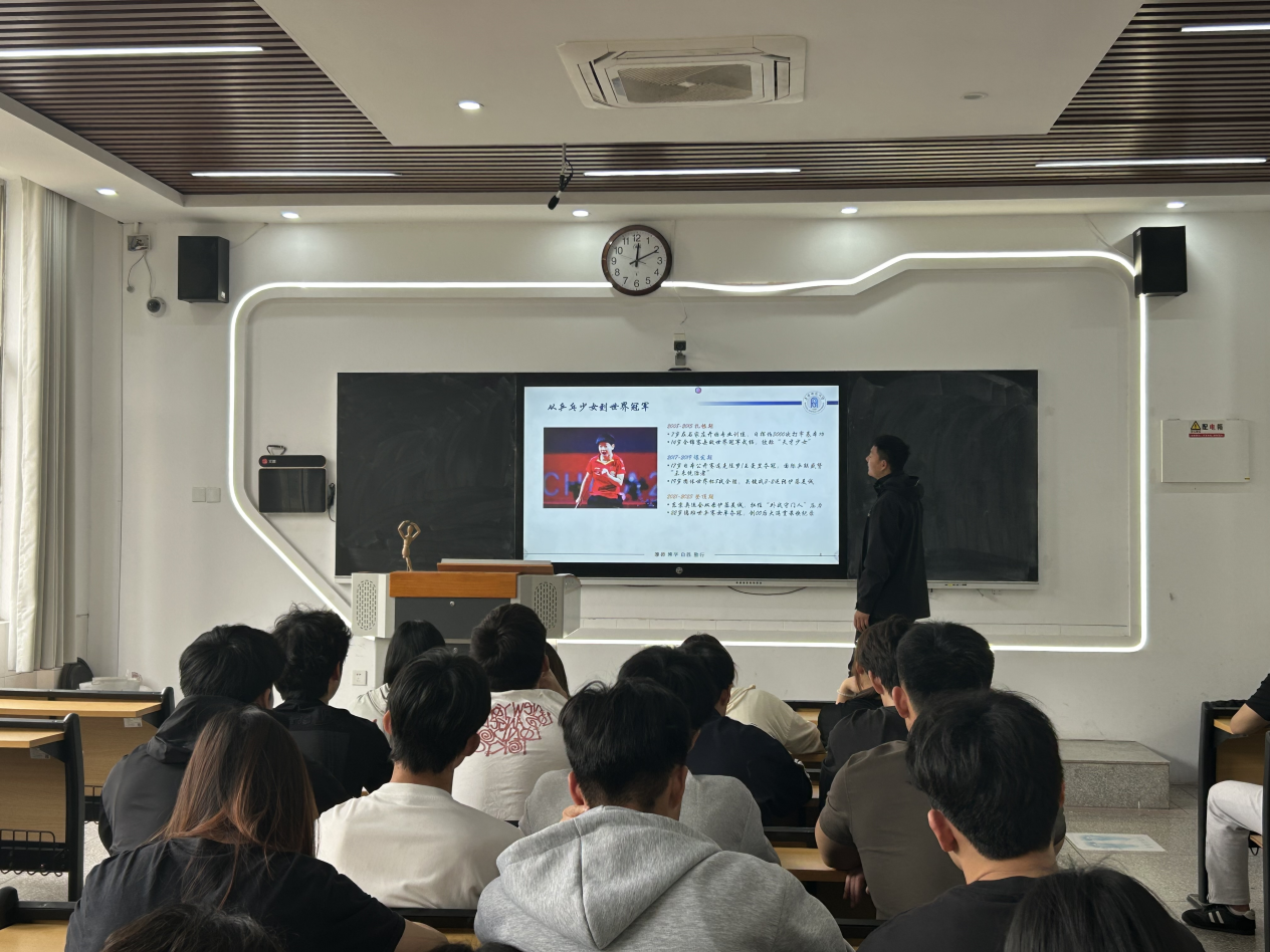 体坛故事分享。体育学院团委组织“青马工程”培训班成员开展体坛故事分享会,2023级邱梦响和2024级贺韧同学以“青春榜样,国乒力量”为主题分享了中国青年五四奖章获得者孙颖莎和樊振东的事迹,向大家传递了运动员成长故事背后所展现的集体主义价值观和拼搏坚持的体育精神。