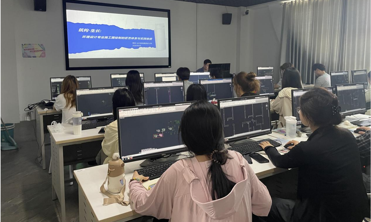 讲座中,杨标通过理论解析与实操演示相结合的授课方式,系统阐释了专业制图规范与实战应用技巧。他以山水装饰集团的企业标准为范本,深入解析建筑制图核心规范,涵盖线型规范、图层分层标准、图框信息要素等专业基础知识,强调了"规范是设计语言的语法根基"这一核心理念。