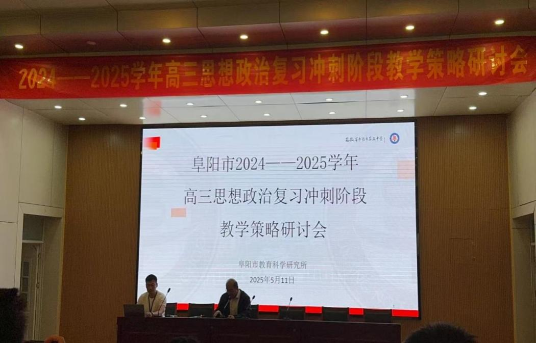 2025年5月11日,我院24级学科教学(思政)研究生集体赴阜阳五中,参加由阜阳市教育科学研究所主办、阜阳市第五中学协办的市级“高三思想政治复习冲刺阶段教学策略研讨会”教研活动。