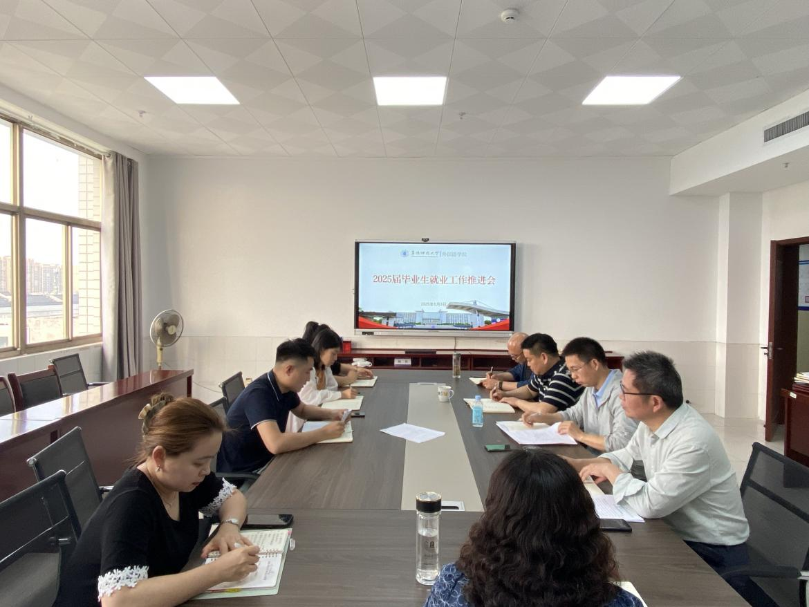 会议传达学习了教育部高校毕业生就业政策举措落实工作推进会精神。通报了学院2025届毕业生就业工作进展情况,分析了当前就业工作面临的形势和挑战,对接下来学院毕业生就业提效冲刺和毕业生文明离校等重点工作进行再动员、再部署。