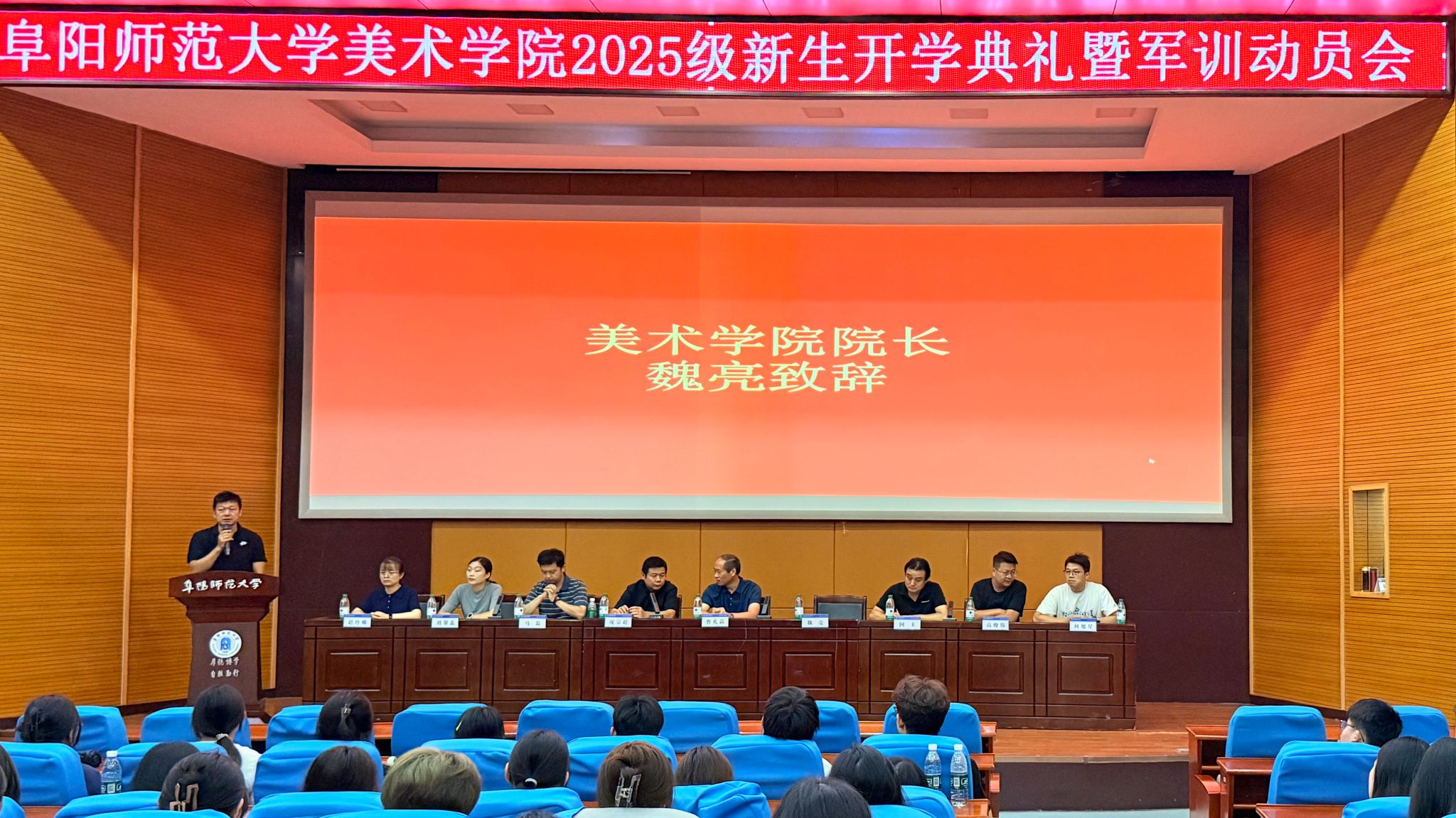 学院院长魏亮发表热情洋溢的欢迎辞,对2025级新生的到来表示欢迎和衷心祝贺。他详细介绍了学院的历史沿革、学科建设、师资力量、教学成果及发展目标,让新生们对学院有了全面而深入的了解。魏亮鼓励新生们珍惜大学时光,树立远大理想,勤奋学习,勇于创新,在艺术的道路上不断探索前行,努力成为有理想、有道德、有文化、有纪律的新时代艺术人才。