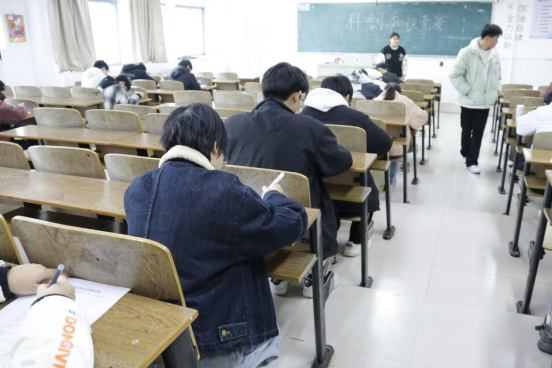 竞赛内容紧密围绕学科前沿与专业核心,聚焦人工智能、大数据、物联网三大关键科技领域,以试卷作答形式开展比拼。试卷题型设计科学全面,兼具基础性、专业性与创新性,全方位考察学生的知识掌握程度与综合应用能力。案例分析题结合智能教育、智慧校园、工业数字化等实际场景,要求学生结合所学知识分析技术落地路径、解决实际问题,同时融入科创项目思路设计相关内容,考验学生的逻辑思维、知识迁移与创新实践能力。比赛现场纪律严明,监考人员全程认真履职,保障竞赛公平公正;参赛学生精神专注、沉着审题。