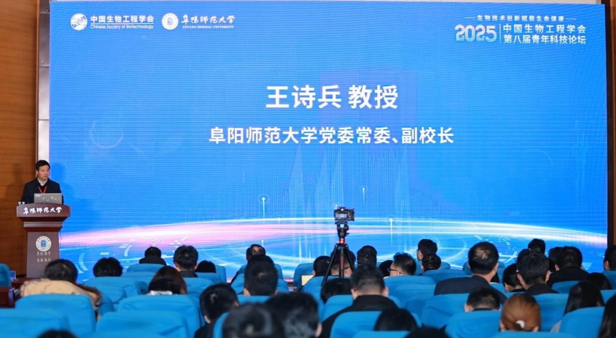 为深入贯彻落实国家关于加快建设科技强国、实现高水平科技自立自强的战略部署,加速推进“生物经济”背景下的产学研创新链条融合,促进前沿生物技术在工程领域的快速应用与转化,加强多学科青年科研人员的交流与合作,11月29日到30日,第八届中国生物工程学会青年科技论坛在我校举行。中国生物工程学会副秘书长、俄罗斯自然科学院外籍院士、中国科学院过程工程研究所杜昱光研究员,中国生物工程学会青工委主任、四川大学逯光文教授,我校党委常委、副校长王诗兵教授出席开幕式。来自北京大学、中国科学院大学、中国科学院微生物研究所、中国医学科学院医药生物技术研究所、浙江大学、四川大学等全国知名高校、科研院所的两百多位专家学者、青年委员及研究生代表齐聚阜阳,共襄学术盛宴。论坛开幕式由我校生物与食品工程学院副院长屈长青教授主持。 杜昱光代表学会对大会的召开表示祝贺,他高度肯定了青年科技人才在国家科技创新体系中的关键作用,并殷切寄语广大青年委员,希望他们勇于担当,敢于创新,在生物工程这一前沿领域中引领方向,为实现科技自立自强贡献青春力量。 王诗兵对与会嘉宾的到来表示欢迎,简要介绍了阜阳市深厚的历史文化底蕴与蓬勃的发展态势。他重点介绍了阜阳师范大学的办学特色以及生物学科近年来在学科建设、科学研究和人才培养等方面取得的丰硕成果,并表示学校将全力支持本次论坛,为生物工程领域的创新发展贡献力量。