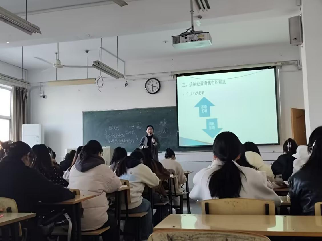 卢少求走进项亚萍老师主讲的《经济法》课堂。课堂上,项亚萍老师以清晰的教学逻辑搭建知识框架,结合行业典型案例与实务场景展开讲解,通过课堂提问、案例研讨等互动形式激发学生主动思考,课堂互动氛围浓厚,充分展现了扎实的专业素养与丰富的教学经验。卢少求边听边记,同时关注学生听课状态与知识接收效果。课后与项亚萍老师进行亲切交流,对老师的课堂教学效果给予了充分肯定,同时强调,课堂是人才培养的主阵地,法学专业教学要紧扣行业需求与时代发展,既要夯实学生专业基础,更要培养其法治思维与实践应用能力。