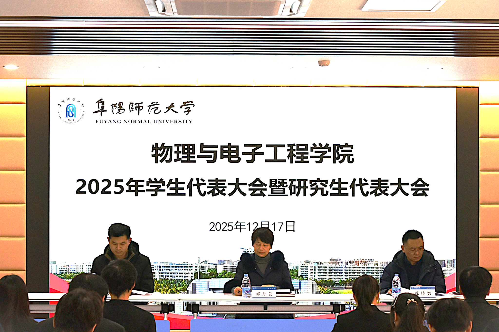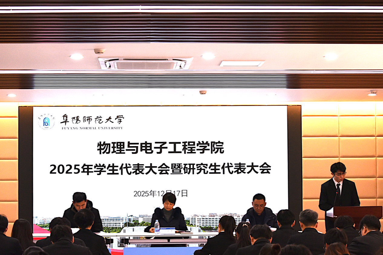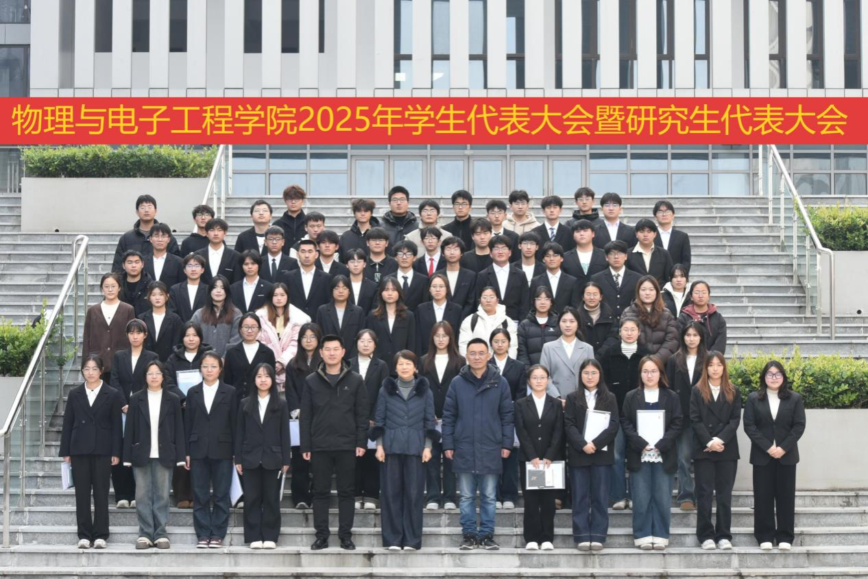 12月17日,物理与电子工程学院2025年学生代表大会暨研究生代表大会于西湖校区新材料工科D楼二楼报告厅胜利召开。学院党委书记郦丹芸、学院党委副书记张传智和学院团委负责人李振出席会议,2025年学生代表大会暨研究生代表大会全体代表参加此次大会。