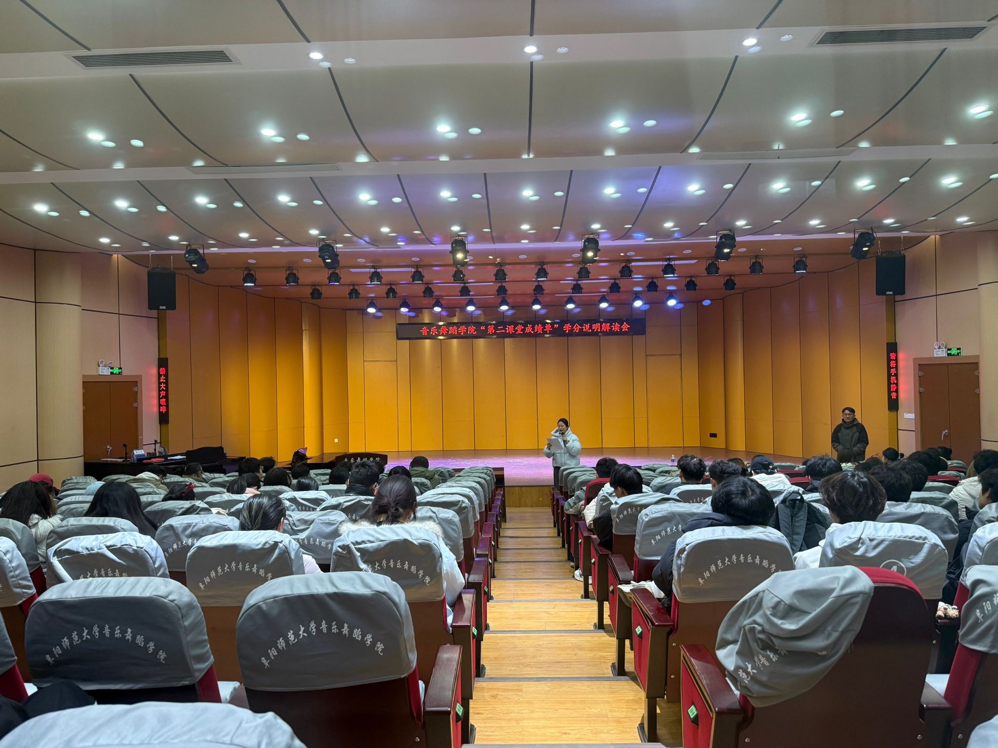 为深入落实立德树人根本任务,构建德智体美劳全面培养的教育体系,12月17日下午,音乐舞蹈学院在报告厅成功举办了“第二课堂成绩单”学分说明解读会。本次会议旨在帮助学院全体学生系统、准确地理解学校第二课堂学分制度的内涵、要求及实施意义,引导学生积极、有序地参与课外实践活动,实现知识、能力与素质的协调发展。