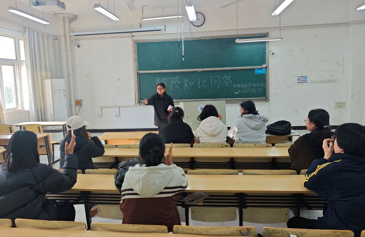 为了让大学生深刻意识到预防癌症的重要性,提高对生命的尊重与珍视意识,我校大学生应急救护协会于2025年12月10日14:00至18:00,在阜阳师范大学西湖校区躬行D楼213教室举办了防癌知识问答活动,协会成员们踊跃参与、积极作答,本次活动取得了圆满成功。
