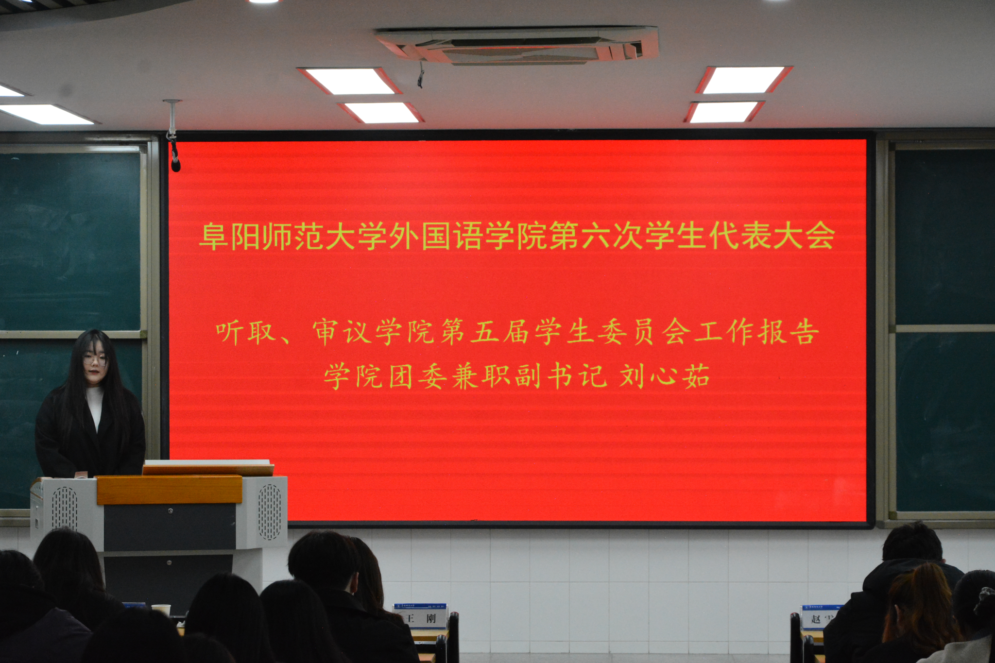 大会听取并审议了外国语学院学生会主席团成员刘心茹作的学生会工作报告,选举产生了阜阳师范大学外国语学院第六届学生委员会和学生委员会主席团、阜阳师范大学第六次学生代表大会外国语学院代表,圆满完成了各项议程。