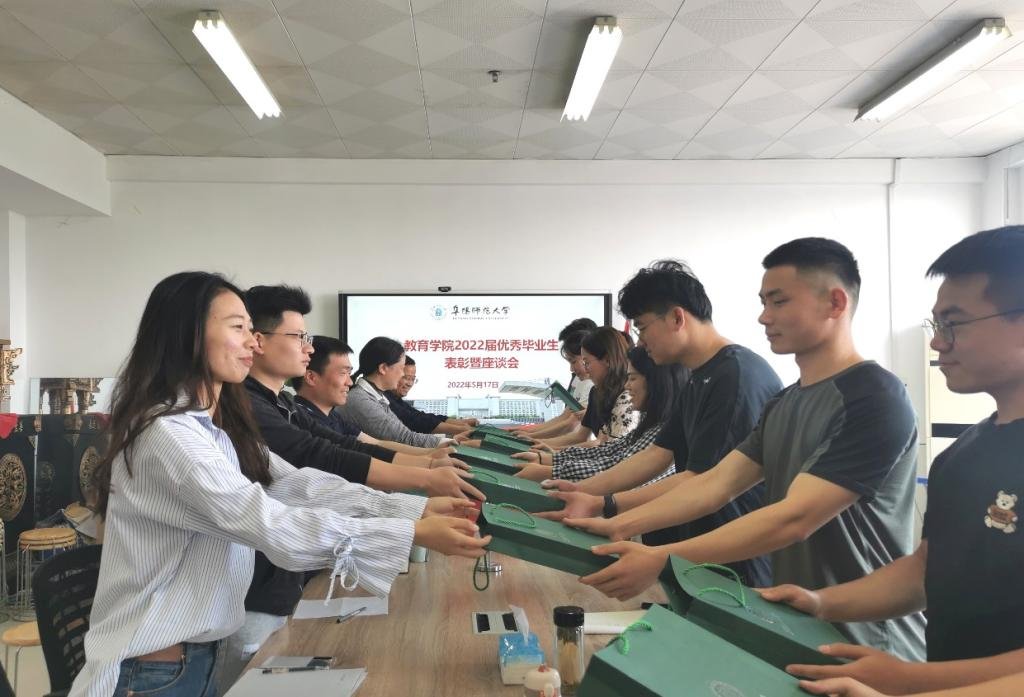 会上为优秀毕业生颁发纪念品。优秀毕业生代表麻书雅、刘强龙、王成凤等进行交流发言。他们回顾过去,展望未来,衷心感谢学院的培养与帮助,纷纷表示在今后的学习工作中会牢记老师们的嘱托,发扬光大师大精神,继续努力,以良好的工作业绩回馈母校。李欢对会议进行总结,鼓励各位学子成为优秀校友,展现优秀毕业生风采。