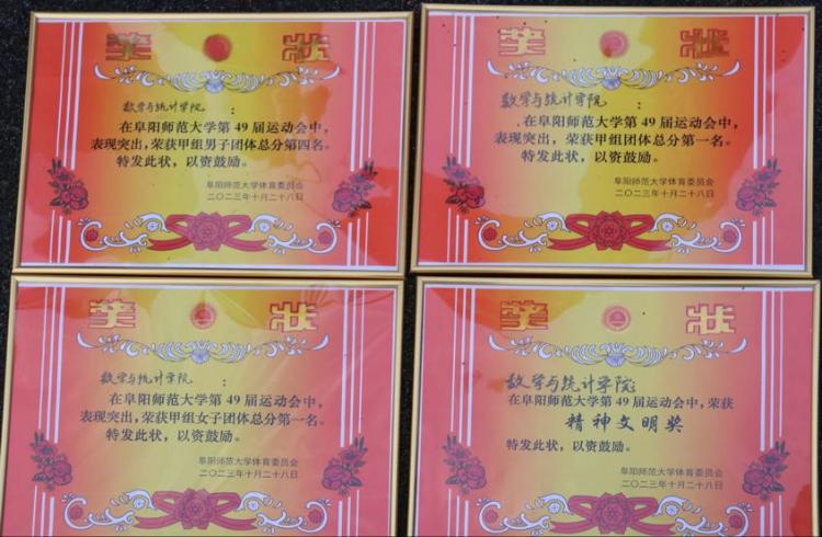 10月26日至28日,阜阳师范大学第49届运动会在我校西湖校区隆重举行。本届运动会,我院选手分别参加了100米短跑、1500米、3000米长跑、跳远、跳高、铅球和男女混合接力等项目比赛进行角逐,最终取得了团体总分第一、女子团体总分第一、男子团体总分第四的好成绩,数学与统计学院获“精神文明奖”。