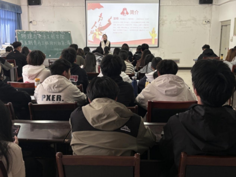 在纪念毛泽东等老一辈革命家为雷锋同志题词60周年之际,为深入贯彻习近平总书记对深入开展学雷锋活动作出的重要指示精神。3月20日,物理与电子工程学院团委在躬行C楼505多媒体教室开展以“时代先锋雷锋精神”为主题的专题讲座。由院团委副书记彭双双老师主讲,第五期“青马工程”学员全员参与。