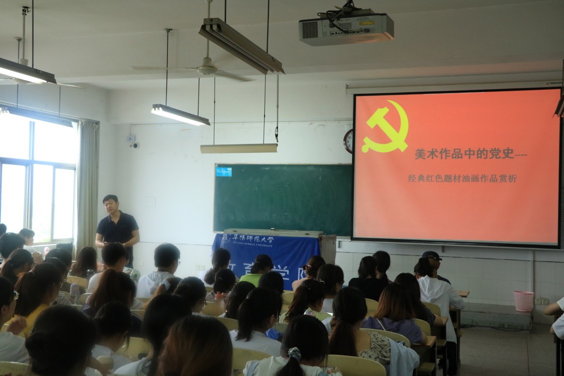 6月16日下午,教育学院“美育大讲堂”系列学术讲座第四讲开讲。本次大讲堂邀请了美术学院魏亮副院长主讲,报告主题为“美术作品中的党史——经典红色题材油画作品赏析”。教育学院党委书记魏文霞主持讲座,两百余名师生到场聆听。