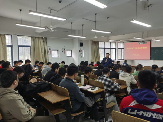 陈韬针对学院电气工程及其自动化专业毕业生往年主要就业去向情况,主要向大家介绍了市县级国家电网的历年来招聘要求。通过分析学院电气专业毕业生历年来在电网的就业状况,他建议大家组建电网学习小组进行集中学习,并根据个人情况处理好就业与考研的关系。
