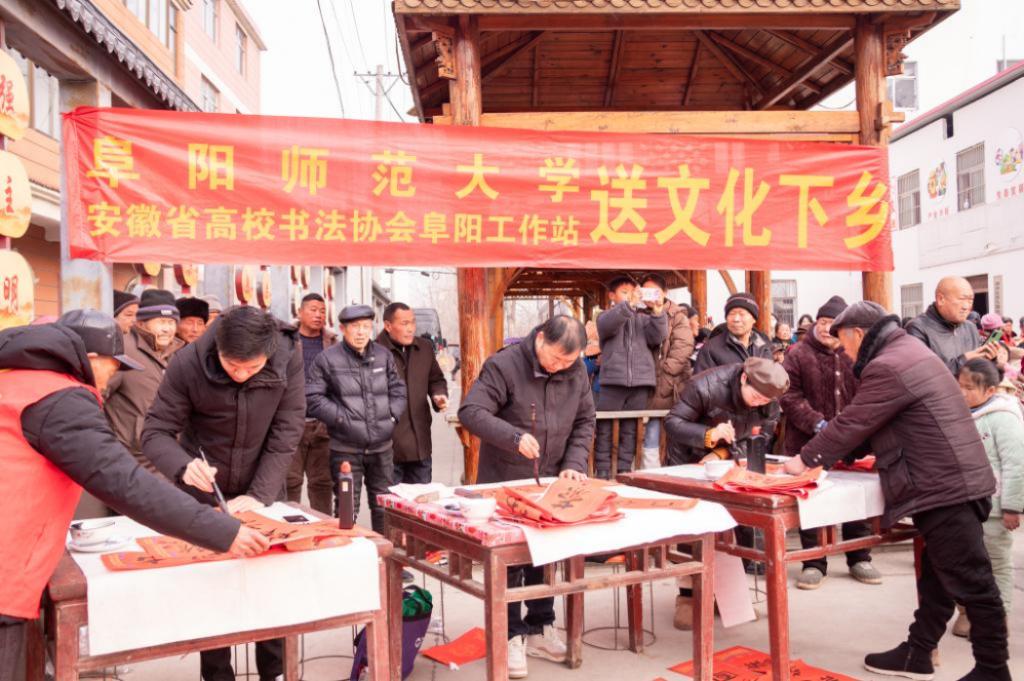 1月29日上午,我院教师参加了由阜阳师范大学与安徽省高校书法协会阜阳工作站联合开展的送文化下乡活动,为京九街道办事处龙王店村和颍州区九龙镇五坑村的村民们现场书写各类寓意吉祥的春联作品。