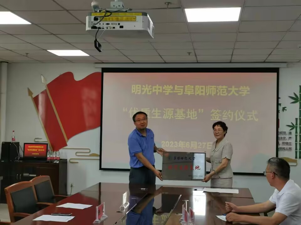 座谈会上,双方围绕专业志愿填报、德育工作、人才培养、协同发展等方面进行了充分交流。历史文化与旅游学院还代表学校与明光中学签订了《优质生源基地建设协议书》,并授予“优质生源基地”牌匾。