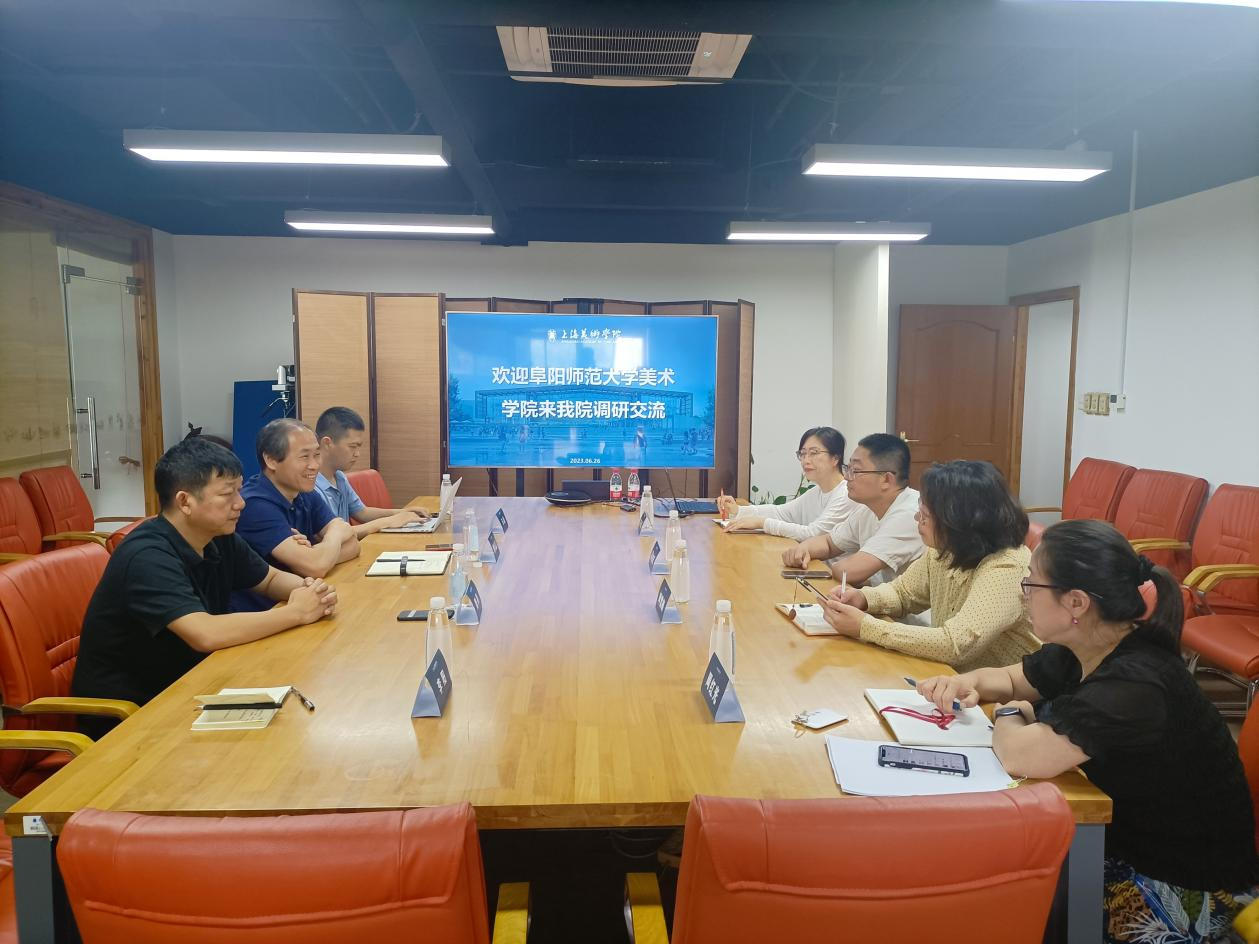 6月26日上午,曹礼品、魏亮带队前往上海大学美术学院考察调研,学院工会主席李阳,科研秘书马磊陪同调研。调研会上,上海大学美术学院教学管理中心主任刘雪梅、副主任周红光、科研管理中心主任宋洁风别详细介绍了学院师资队伍、专业设置、科研管理等情况。曹礼品简要介绍了阜阳师范大学美术学院办学历程、学科建设等基本情况,并详细介绍了阜阳师范大学人才强校战略,希望双方在博士生引进上能够展开合作。魏亮围绕研究生培养、绘画专业市场定位、专业建设等问题与对方展开交流。随后曹礼品、魏亮一行在校友苏金成教授的陪同下参观了毕业生展览,在校友张长虹教授的陪同下调研了美术史论系,进行了专业建设深入交流。