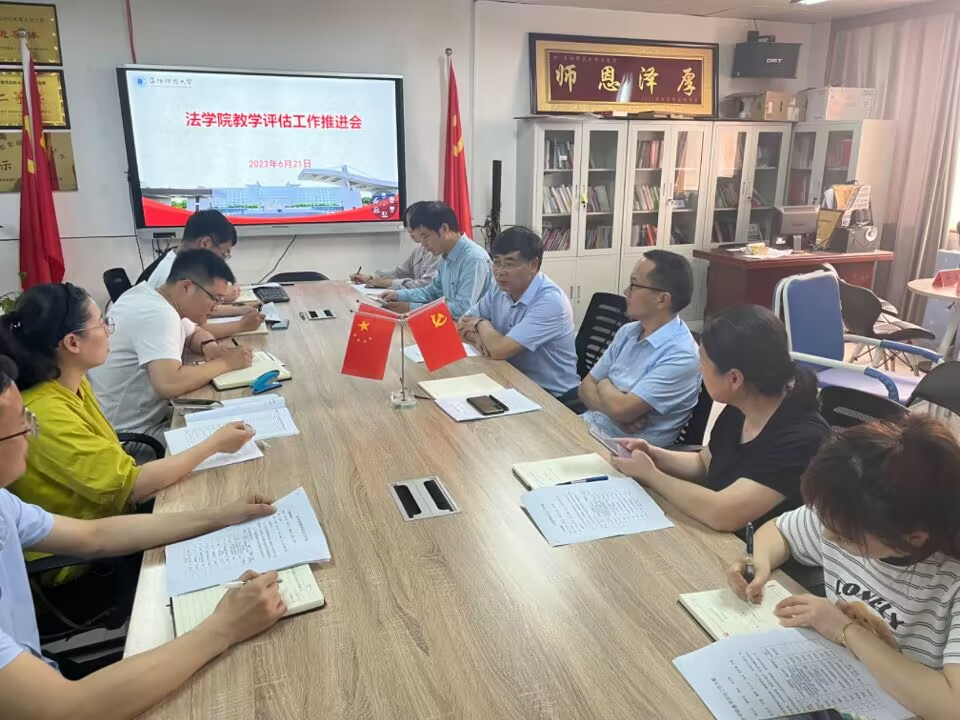 6月21日下午,法学院在景行楼812会议室召开迎接教学评估工作推进会。法学院院长余为青、党委副书记李阳、副院长吴万群以及教学迎评小组全体成员参加会议。