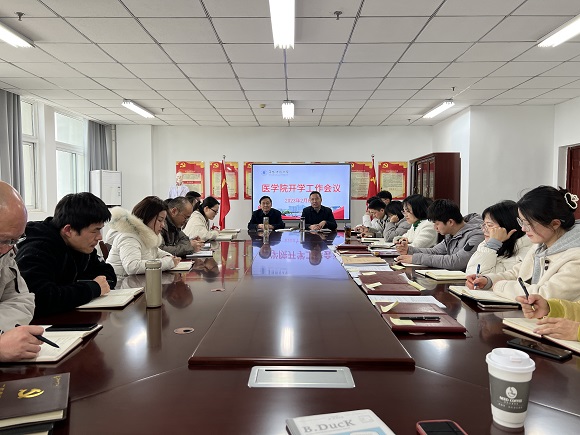 2月8日下午,医学院在正行楼802会议室召开新学期工作会议,对2023年春季学期学生返校等工作进行部署。院长刘玉祥、党总支副书记牛贵宏及全体教职工参加会议,会议由牛贵宏主持。