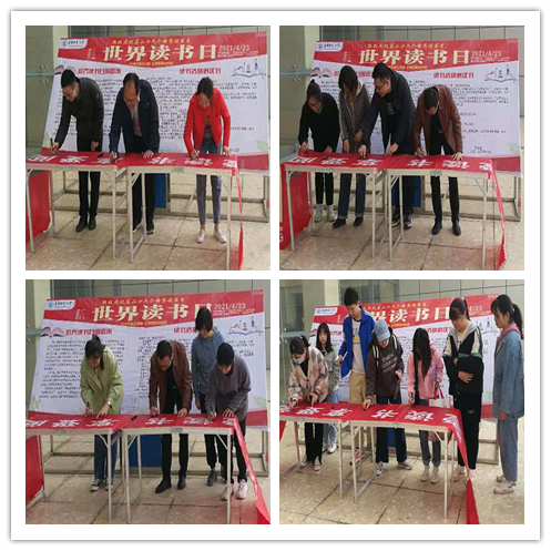 王申红为本届读书节活动致开幕辞,她指出,今年的读书节是在献礼建党100周年的背景下开展的,内容丰富,意义深刻,希望师生以此为契机,秉承“厚德 博学 自胜 勤行”的校训,爱党爱国爱校,勤学勤思勤读,把阅读作为终身学习和幸福生活的源泉。开幕式结束后,参与活动的馆领导、馆员及读书爱好者共同参加了“热爱读书 享受阅读 品味人生”主题签名活动。