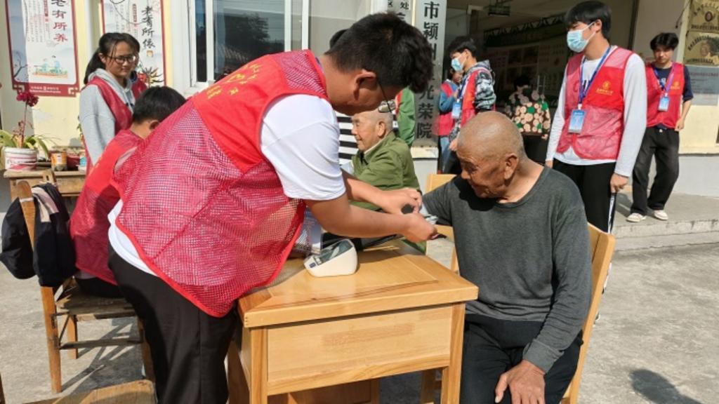为大力弘扬中华优秀传统文化,厚植尊老、敬老、爱老、助老的优良传统,营造传统节日文化氛围,大力弘扬“奉献、友爱、互助、进步”的志愿精神,增强青年学生的感恩意识和社会公德意识,引导学生尊老爱老,10月21日,在重阳节到来之际,我院团委组织青年志愿者到阜阳市颍州区光荣院开展“九九重阳节,浓浓敬老情”志愿服务活动,为老人们送去温暖与欢乐。