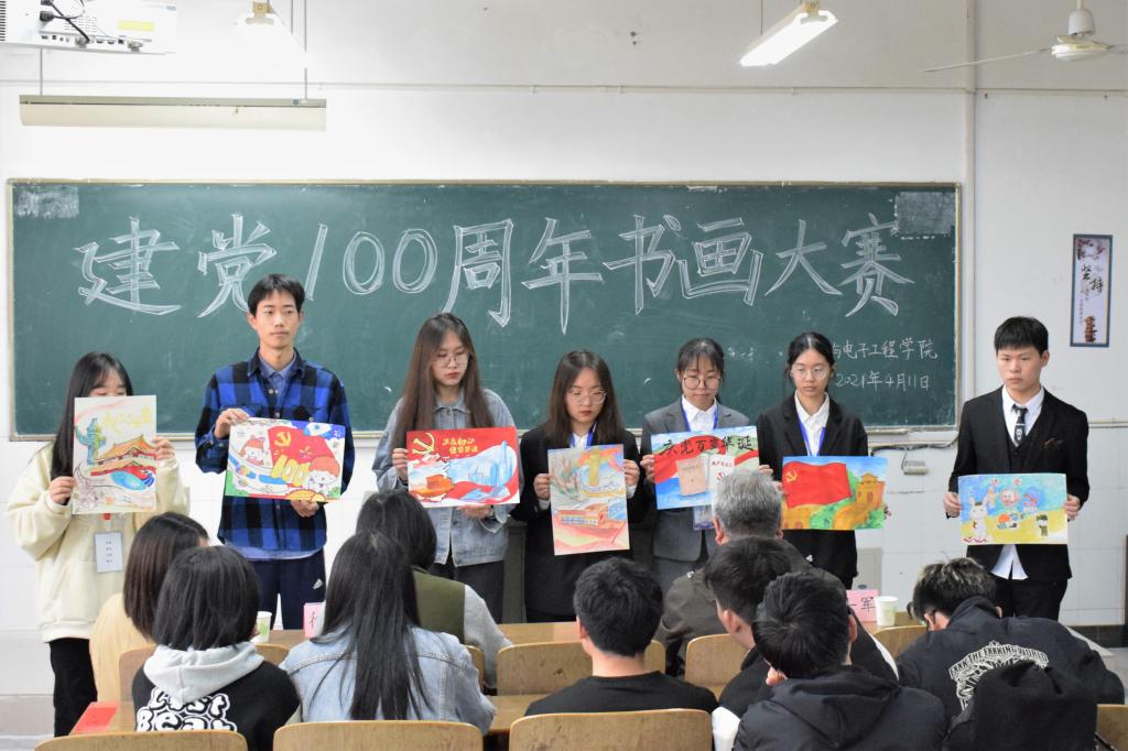 为学习宣传党的百年历史,表达爱党爱国情怀,推动学院美育工作, 4月11日上午,物理与电子工程学院在躬行楼A楼102、103和104教室举办以“百年风雨党史,铸就辉煌华夏”为主题的书画大赛。安徽省书法家协会会员李士军老师、美术学院视觉传达教研室主任徐明君老师担任本次比赛评委,该院党委书记吴学军、党委副书记、院长朱勇、院团委书记辛敏参加了本次比赛。