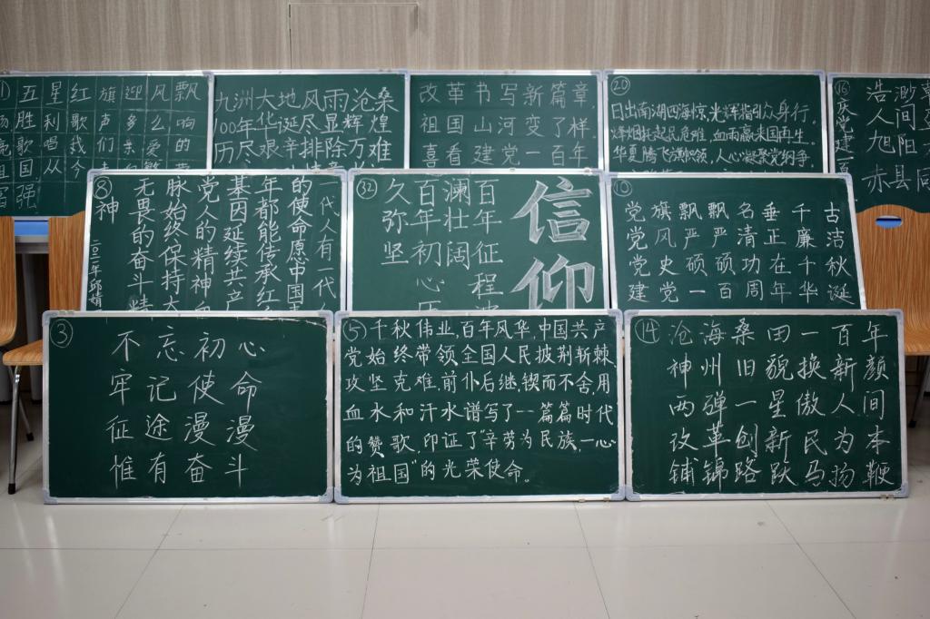 软笔组选手施韵同学说:“不忘初心,牢记使命,征途漫漫,惟有奋斗……习近平总书记在回忆我们中国共产党的历史时提到,我们党通过奋斗,披荆斩棘,越过了万水千山,希望在今后的日子里,我们党能够带领全国各族人民继续奋斗,勇往直前,创造更加灿烂的辉煌。”粉笔字组选手周冰婷说:“大学生学习百年党史不仅可以增强“四个自信",而且有利于坚定共产主义信仰”。绘画组黄诗怡说:“我画的高铁代表我国的科技会乘风破浪,迎来新的腾飞;牡丹花代表对祖国的祝福,希望祖国繁荣昌盛。”