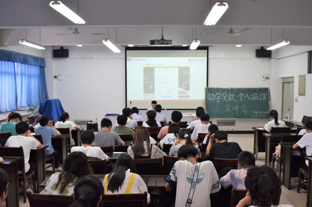 高扬从生源地助学贷款、个人征信、防范金融诈骗、断卡行动和非法集资五个方面进行宣讲。他说金融业务便利与风险并存,掌握金融知识能有效规避风险,帮助大学生提升防范意识,适应未来社会。他还给大家播放了防范金融诈骗的宣传视频,呼吁大家珍爱信用记录,享受幸福人生。