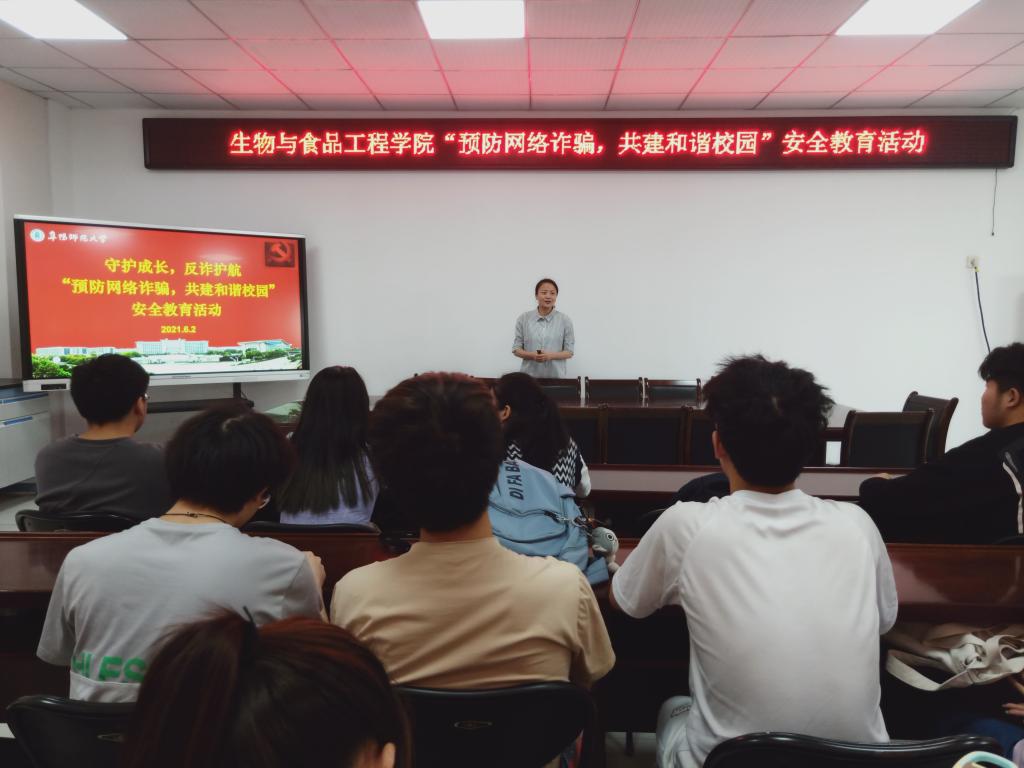 为进一步增强大学生防范网络诈骗意识和增强防诈骗的识别能力,切实保障学生的财产安全,5月30日到6月2日,生物与食品工程学院采取线上线下多种形式,有针对性地广泛开展大学生防诈骗安全教育活动,重点对防诈骗教育工作再强调、再落实,积极营造良好的校园防范电信网络诈骗氛围。