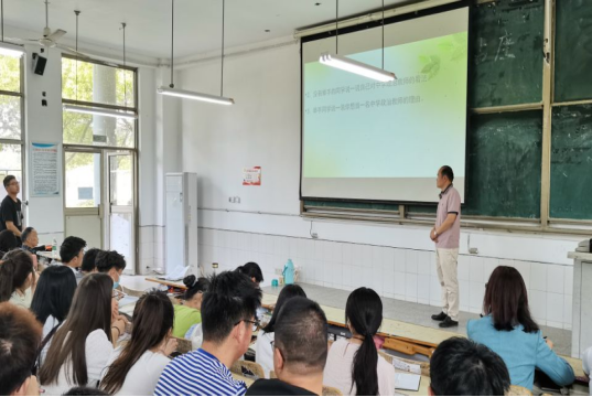 5月10日,太和中学张坤峰老师以“如何成为合格的思政课教师”为主题,从新时代思政课教师使命担当、学生眼中的好老师以及新课程背景下思想政治老师角色定位等方面,与同学们分享了自己的心得体会。他勉励同学们,要由德育的灌输者转换为德育的引导者和促进者,由教学研究的旁观者转换为思政教学的研究者,由思政课程的执行者转换为课堂教学的创新者。