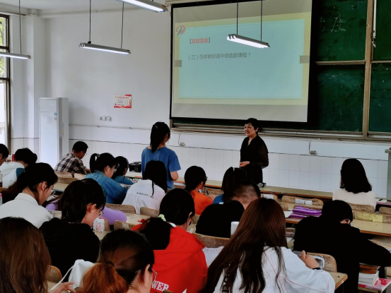 刘燕老师以“高中思政新课程的教学策略”“做新时代最好的思政课教师”为题,为同学们举行了两场讲座。上午,刘燕从“高中思政课改革的新背景”“改变从思政课程开始”“思政课程我们在行动”三个方面入手,结合自己的从教经验,引导同学们能够树立正确的课程观、教学观和育人观,修炼高尚师德、储备专业知识、提高专业素养,努力成长为一名优秀的思政课教师。下午,刘燕老师又从“新时代思政课教师成长的社会背景”“新时代思政课教师专业成长的途径”“新时代思政课教师成长的体会分享”三个方面与同学们进行交流,她强调,新教师应该全方面反思自己的教学观念、教学设计和教学行为,反思自己采用的教学方式的合理性、适切性、精确性和有效性以及教学评价的发展性、客观性和激励性等,为同学们将来的思政课教师生涯指明了方向。