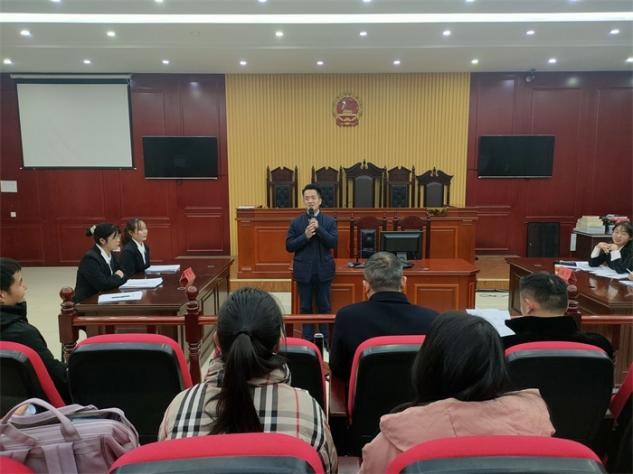 为彰显全面依法治国精神,提升同学们的专业修养,引导同学们将理论知识转化为实践技能,法学院于2020年12月5日在西湖校区景行楼模拟法庭举办了第五届“淮都杯”模拟法庭大赛决赛。本次比赛邀请了颍东区人民法院刑事审判庭审判长李辉、颍州区人民法院颍南法庭庭长汤辉、安徽淮都律师事务所党支部书记王友臣、安徽淮都律师事务所副主任王广友、阜阳师范大学法学院副院长吴万群担任评委。在初赛、复赛中脱颖而出的八位选手参加了本次比赛。