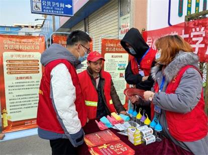 为扎实推进普法工作,增强人民群众的法治理念和法治意识,引导公民树立法治意识、养成守法习惯,促进形成遵守法律、维护法律、崇尚法治的良好风尚,法学院青年志愿者协会于2020年12月20日深入鼓楼社区开展了志愿普法活动。