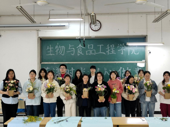 为进一步加强大学生心理健康教育,丰富校园文化生活,帮助同学们在花艺创作中舒缓学业压力、调节情绪状态,生物与食品工程学院心理委员联合会于2026年4月11日下午2:30在躬行楼D楼105教室举办了以“花漾时光,以心做束”为主题的插花活动。旨在以花叶为载体、以创作为纽带,将传统花艺美学与心理疏导深度融合,为同学们搭建一个放松身心、疗愈心灵的平台,引导同学们用积极乐观的心态面对学习与生活。