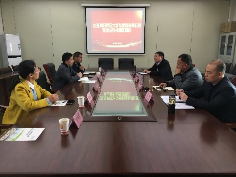2021年11月19日上午,生物与食品工程学院副院长唐俊带队赴阜阳国家农业科技园区调研,颍泉区科技局局长储艳霞、园区办党组书记温振海、园区主任江龙海和副主任张浩等参加调研。